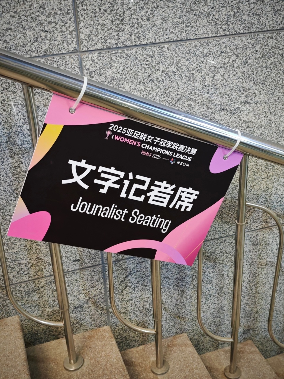 武汉体育中心还保留着此前的女足亚冠引导牌。图/九派新闻 董自能